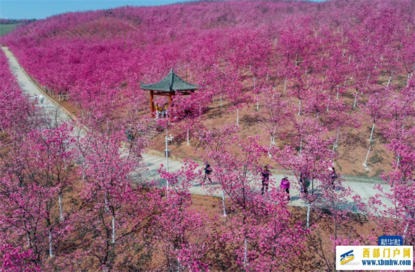 近日,云南省昆明市宜良县山后樱花谷的樱花进入盛花期,吸引游客前来观光游览。据介绍,宜良县山后樱花谷面积达4000余亩,花期从每年12月底延续至次年4月中旬。